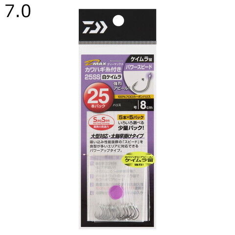 ダイワ D-MAXカワハギ糸付き25SS 白ケイムラ パワースピード 7.0 (針サイズ7号、ハリス2号、ハリス長さ8cm)25本 DAIWA カワハギ仕掛け D-MAXカワハギイトツキ25SSシロケイムラ パワースピード7.0 【返品種別A】