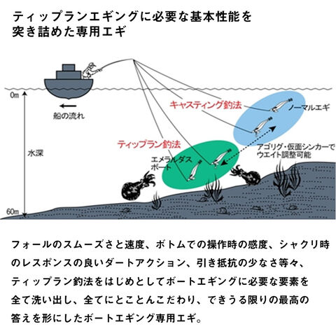 エメラルダスボートIIは十分な浮力を確保しつつエギンガーのシャクリを受け止め素直にダートする形状になっている。