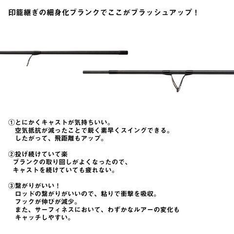キャストを繰り返す釣りでは、ジョイント部を薄くすることでブランク全体を細く仕上げ、振り抜きの良さと操作感が向上します。
