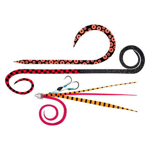 紅牙シリコンネクタイ中井チューンSTRスリム、中井チューンSTCスリム、シングルカーリーR、ツインカーリーRが各1本ずつ入っているため、