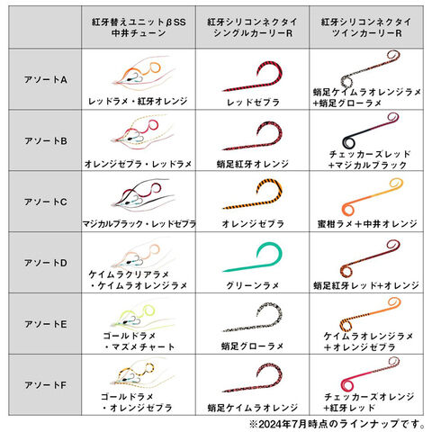 リーダーを切らずにネクタイやフックの交換が簡単に行えるβシステム、ネクタイとフックを同調させる紅牙同調ビーズが装着されているので快適に釣りが楽しめる。