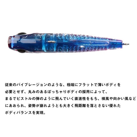 まるでピストルの弾のように飛んでいく直進性をもち、横風や向かい風などにあおられ、姿勢が崩れようとも大きく飛距離を落とさない優れたボディバランスを実現。