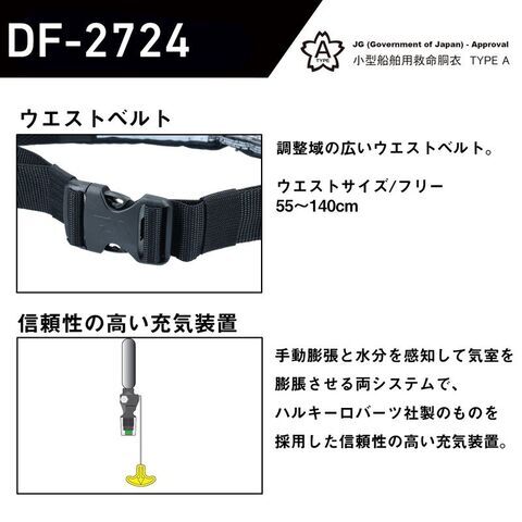 ダイワ DF-2724 インフレータブルライフジャケット ウエストタイプ自動・手動膨脹式 フリー(ブルー) DAIWA 膨脹式ライフジャケット 国土交通省型式承認品(小型船舶用救命胴衣TYPE-A) DF-2724(ブルー) 【返品種別A】