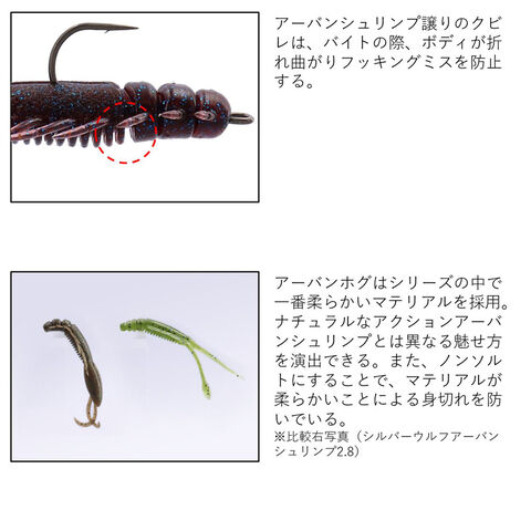 アーバンシュリンプ譲りのクビレは、バイトの際、ボディが折れ曲がりフッキングミスを防止する。