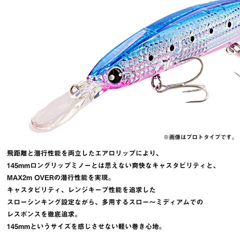 飛距離と潜行性能を両立したエアロリップにより、ロングリップミノーとは思えない爽快なキャスタビリティと、Max2mOVERの潜行性能を実現。
