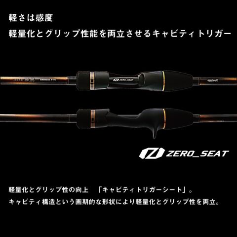 軽量化とグリップ性の向上「キャビティトリガーシート」。キャビティ構造という画期的な形状により軽量化とグリップ性を両立。