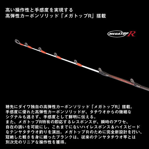 穂先にダイワ独自の高弾性カーボンソリッド「メガトップR」搭載。