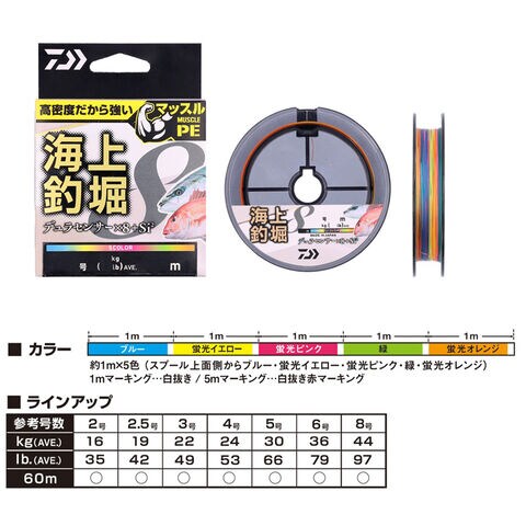 ダイワ UVF海上釣堀デュラセンサー×8+Si2 60m(3号/平均49lb) 1m×5色 DAIWA PEライン UVFカイジョウツリボリデュラセンサー8+Si260m(3ゴウ/49lb) 【返品種別B】