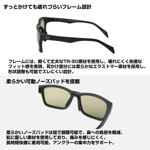 従来のサングラスの掛け心地の窮屈さを解決し、体格の良い方でも快適に釣りが可能なゆったりサイズモデル。