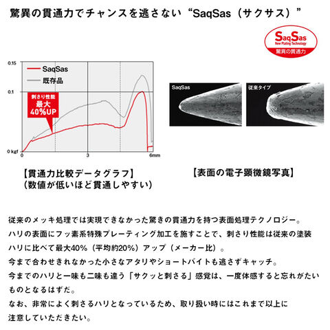 驚異の貫通力を誇るサクサストレブルフック2本仕様のため、