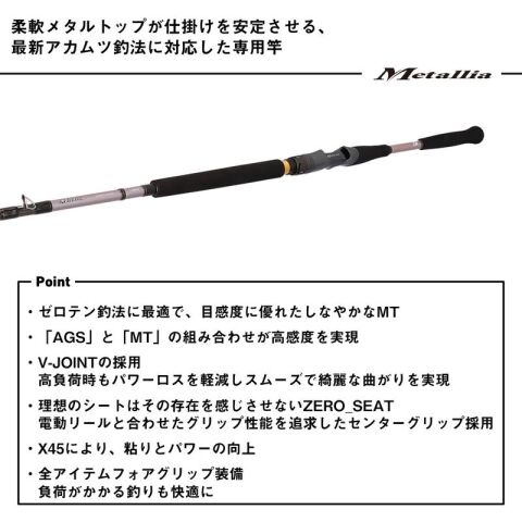 従来の中深場竿よりもしなやかな『MT』を搭載し、アカムツと外道を鮮明に判別できる他に類を見ない優れたな目感度を実現。
