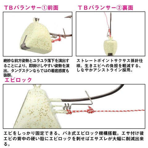 ストレートポイントサクサス孫針仕様。生きエビへの負担を軽減する、しなやかアシストライン採用。