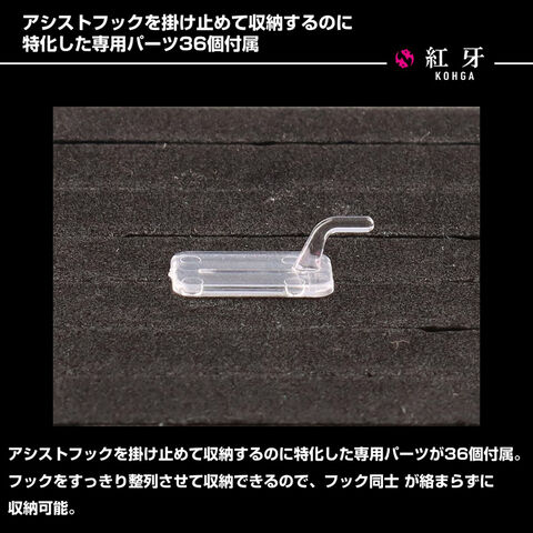 アシストフックを掛け止めて収納するのに特化した専用パーツが36個付属。