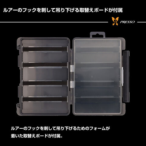 ルアーのフックを刺して吊り下げるためのフォームが着いた取替えボードが付属。