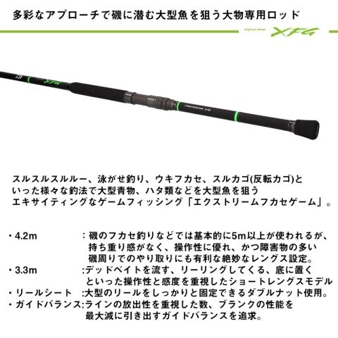 磯の中層を悠々と泳ぎ回る大型魚を多彩な釣法で狙う為に開発された、これまでのフカセ竿とは一線を画す新コンセプト磯大物専用ロッド。