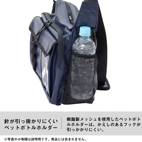 針が引っ掛かりにくい樹脂製メッシュを使用したペットボトルホルダー。