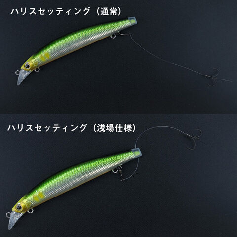 また、通常使用においても、従来のAYUINGミノー同様、後方アイの後ろに埋め込まれたマグネットにより、スプリットリングを固定し、イカリをまっすぐ後方へ垂らし、川底付近をじっくりと攻めることもできる。