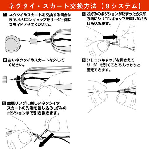 リーダーを切らずにネクタイやフックの交換が簡単に行えるβシステム、ネクタイとフックを同調させる紅牙同調ビーズが装着されているので、快適に釣りが楽しめる。