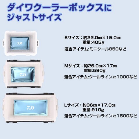 Sサイズはミニクール850、Mサイズはクールラインα1000、Lサイズはクールラインα1500にピッタリ。