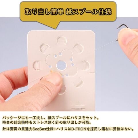 パッケージにも一工夫し、紙スプールにハリスをセット。
