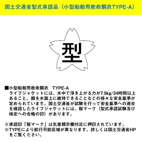 小型船舶用救命胴衣TYPE-A取得。