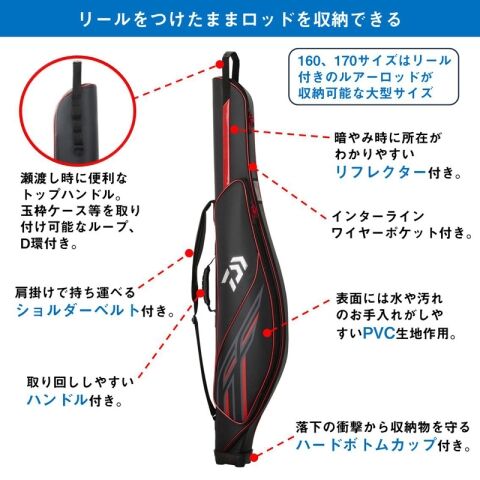 ・160、170サイズはリール付きのルアーロッドが収納可能な大型サイズ