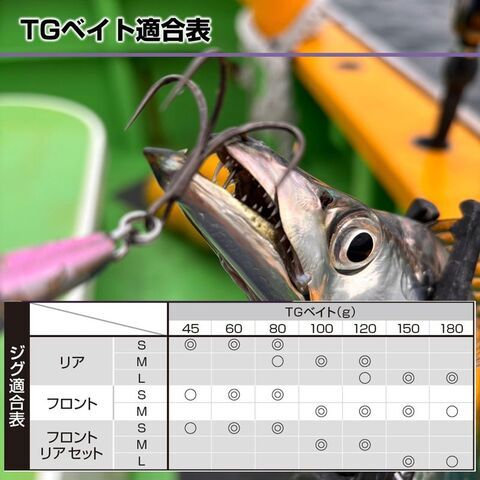 TGベイト(45~180g)に適合したタチウオジギング用クワトロ・トレブルフック。