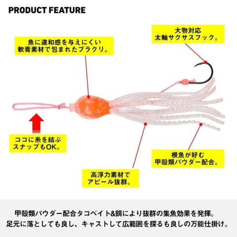 甲殻類パウダー配合タコベイト&餌により抜群の集魚効果を発揮!