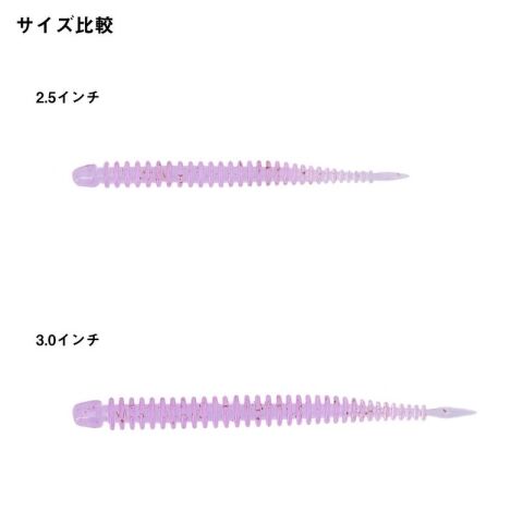 一般的なワーム素材として使用される素材「塩ビ」を採用することで揺れる船上でもジグヘッドにセットしやすい!