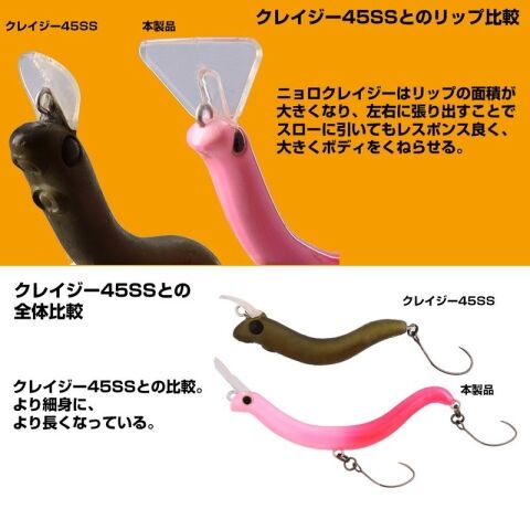 2010年、他のエリアトラウトプラグとは一線を画す独自の湾曲したスリムボディの頭上にリップを付けたPRESSOクレイジー45SSを発売。