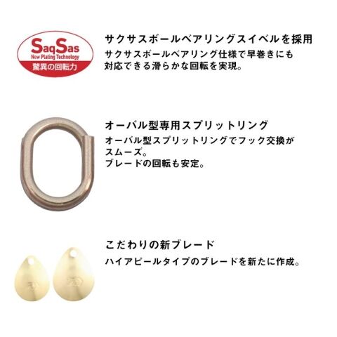 オーバル型スプリットリングでフック交換がスムーズ。ブレードの回転も安定。