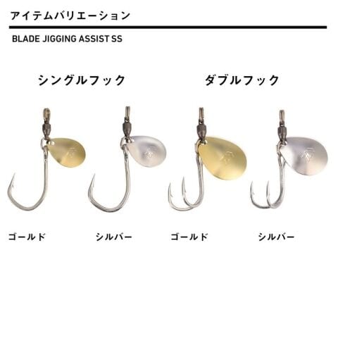 ブレードカラーがゴールドとシルバー、フックはシングルフックとダブルフックの計4種類。