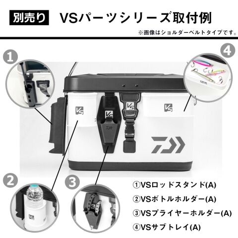 別売のVSパーツシリーズでバーサタイルに使用可能。更に利便性アップ。システムツールバッグ(A)、小型タックルボックスの収納にも対応。