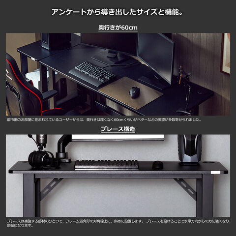 - 機能:ケーブル配線穴/ケーブル配線ノッチ/モニターアーム対応/磁石付き電源タップ対応