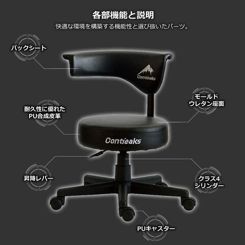 - 素材:合成皮革/スチール/モールドウレタン/樹脂/ナイロン樹脂キャスター