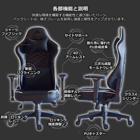 - 機能:N4Dアームレスト/175度静音リクライニング/座面前傾チルト機構/背面ポケット収納/回転/昇降