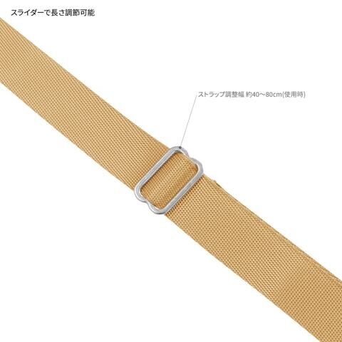 ◆ショルダーストラップは最長約80cm(使用時)、長さ調節パーツ付きなので自由な長さに調整可能。