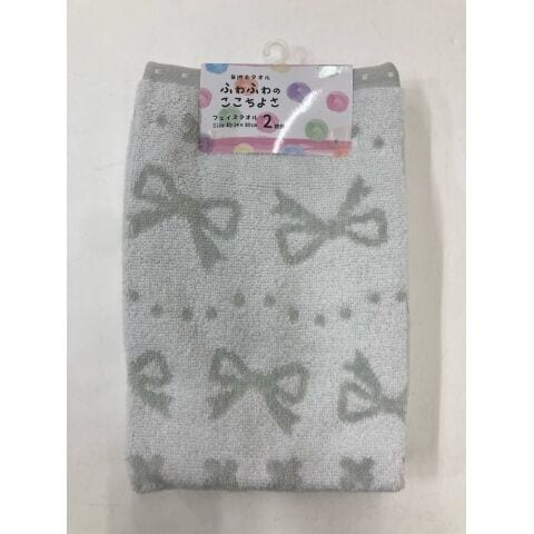 林(Hayashi) フェイスタオル2枚組 シュシュリボン 無撚糸(グレー・約34×80cm) FN478229 【返品種別A】