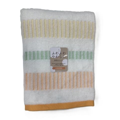林(Hayashi) バスタオル ホリデーボーダー 無撚糸(約60×120cm・オレンジ) BN478306 【返品種別A】