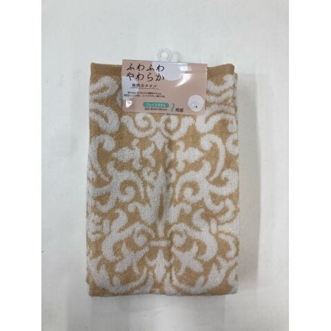林(Hayashi) フェイスタオル2枚組 ソフトダマスク 無撚糸(ベージュ・約34×80cm) 高級感のあるダマスク柄が特徴です。 FO427028 【返品種別A】