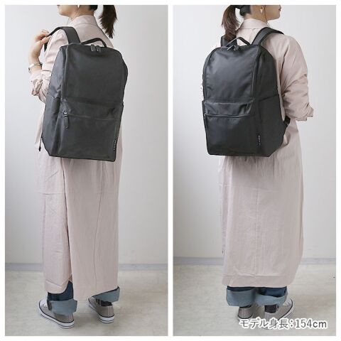 メイン収納ルームはA4サイズに対応。スリムな見た目ながらもマチ幅をたっぷりと設け、通勤通学用のリュックやマザーズバッグにもぴったりのサイズ感。
