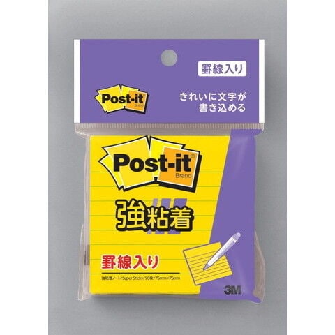 スリーエム ポスト・イット 罫線入り 強粘着タイプ 75mm×75mm 90枚入り(ビビットイエロー) Post-it 630SS-YN 【返品種別A】