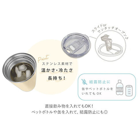 ステンレス真空断熱構造で、冷たさ・温かさが長持ち◎※熱い飲み物を入れて使用される場合は火傷の原因となりますので、必ずタンブラーから出してお飲みください。
