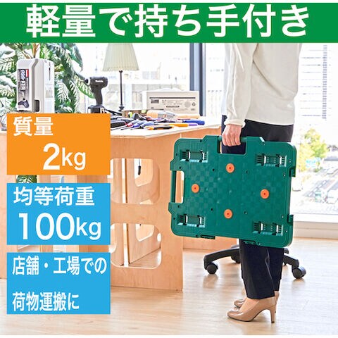 トラスコ中山 樹脂製平台車 連結式ルートバン 515×385 ナイロン車輪 ストッパー付(緑) MPB-500NS-GN 【返品種別B】