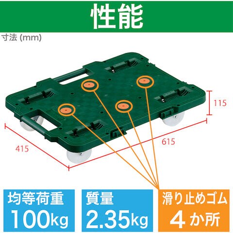 トラスコ中山 樹脂製平台車 連結式ルートバン 615×415 ナイロン車輪(緑) MPB-600N-GN 【返品種別B】