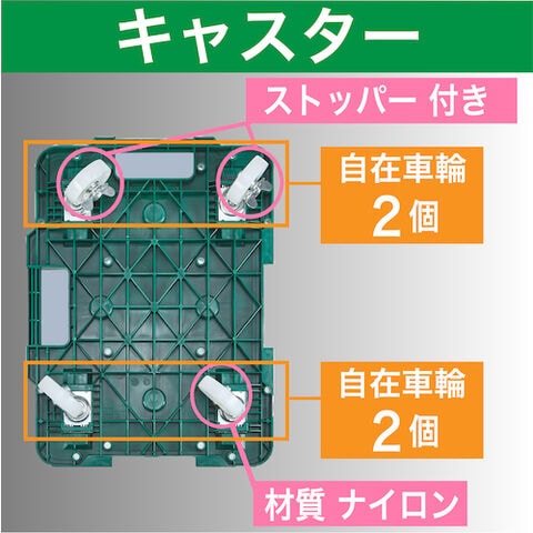 - キャスター:自在キャスター2個、自在ストッパー付キャスター2個