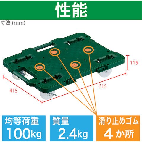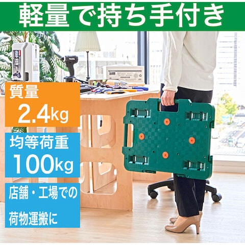 トラスコ中山 樹脂製平台車 連結式ルートバン 615×415 ナイロン車輪 ストッパー付(緑) MPB-600NS-GN 【返品種別B】