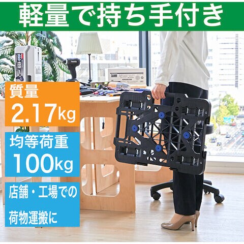トラスコ中山 樹脂製平台車 連結式ルートバン メッシュタイプ 615×415 ナイロン車輪 4輪自在 ストッパー付(黒) MPK-600NJS-BK 【返品種別B】