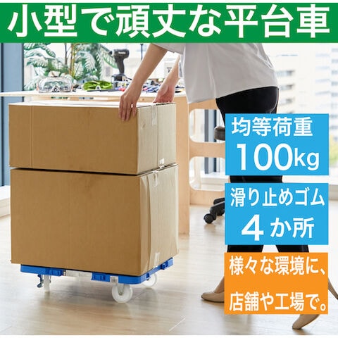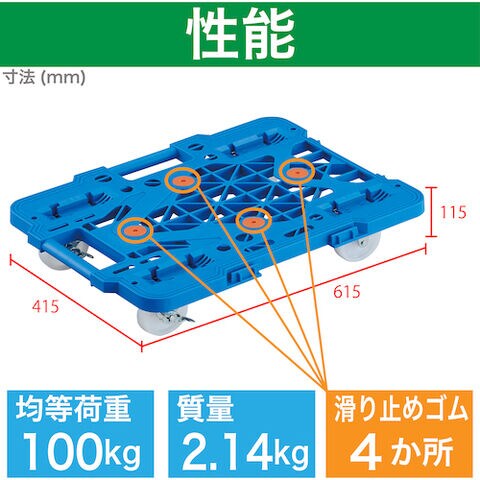 トラスコ中山 樹脂製平台車 連結式ルートバン メッシュタイプ 615×415 ナイロン車輪 自在側ストッパー付(青) MPK-600NS-B 【返品種別B】