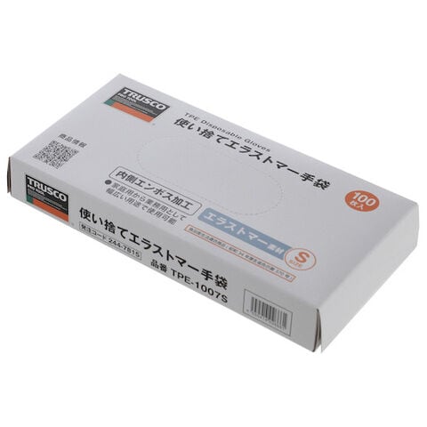 トラスコ中山 使い捨てエラストマー手袋 内エンボス Sサイズ (100枚入) TRUSCO TPE-1007S 【返品種別B】
